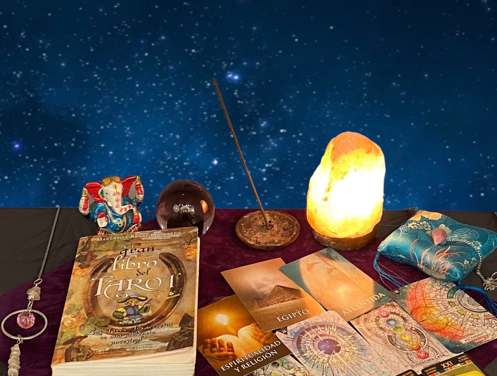 Es por esto que las herramientas que utilizamos son el tarot, que entiende la vida como un proceso de evolución que pasa por distintas etapas, representado por los arcanos mayores y menores, como grandes y pequeñas verdades respectivamente. También utilizamos un tarot guía relacionado con la carta natal, estudiando la tendencia energética innata de esta persona y la relación con su destino o sucesos vitales. Y por último utilizamos herramientas para acceder a información relevante sobre vidas pasadas, que podría estar influyendo en cosas inexplicables que están sucediendo en la vida actual.